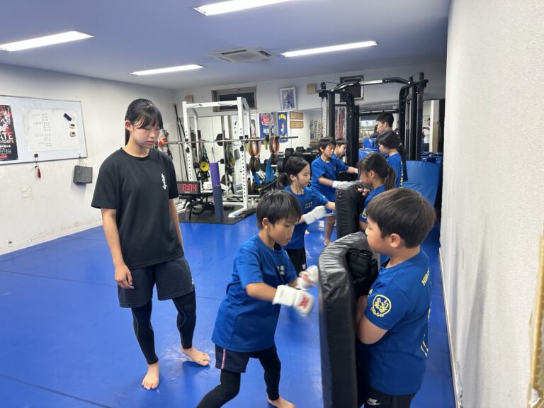 道場では基本稽古、ミット打ち、スパーリングと、アクティブな内容を全力で取り組んでもらっています。 奇数人数のときは、指導員や先輩がミットを持ってくれるおかげで、ひとりも無駄なく稽古に集中できます。その反面、子どもたちには「見学」になる時間が少しだけあ […]